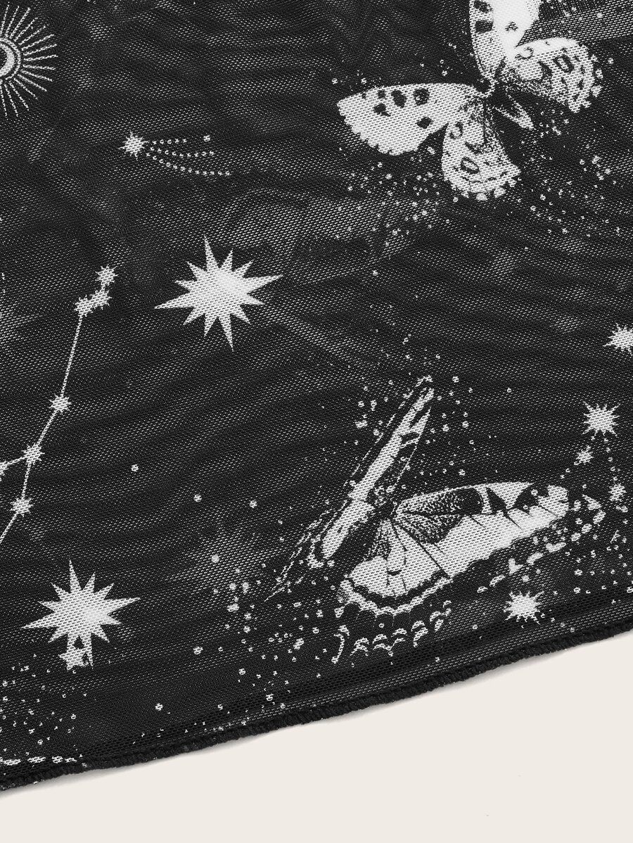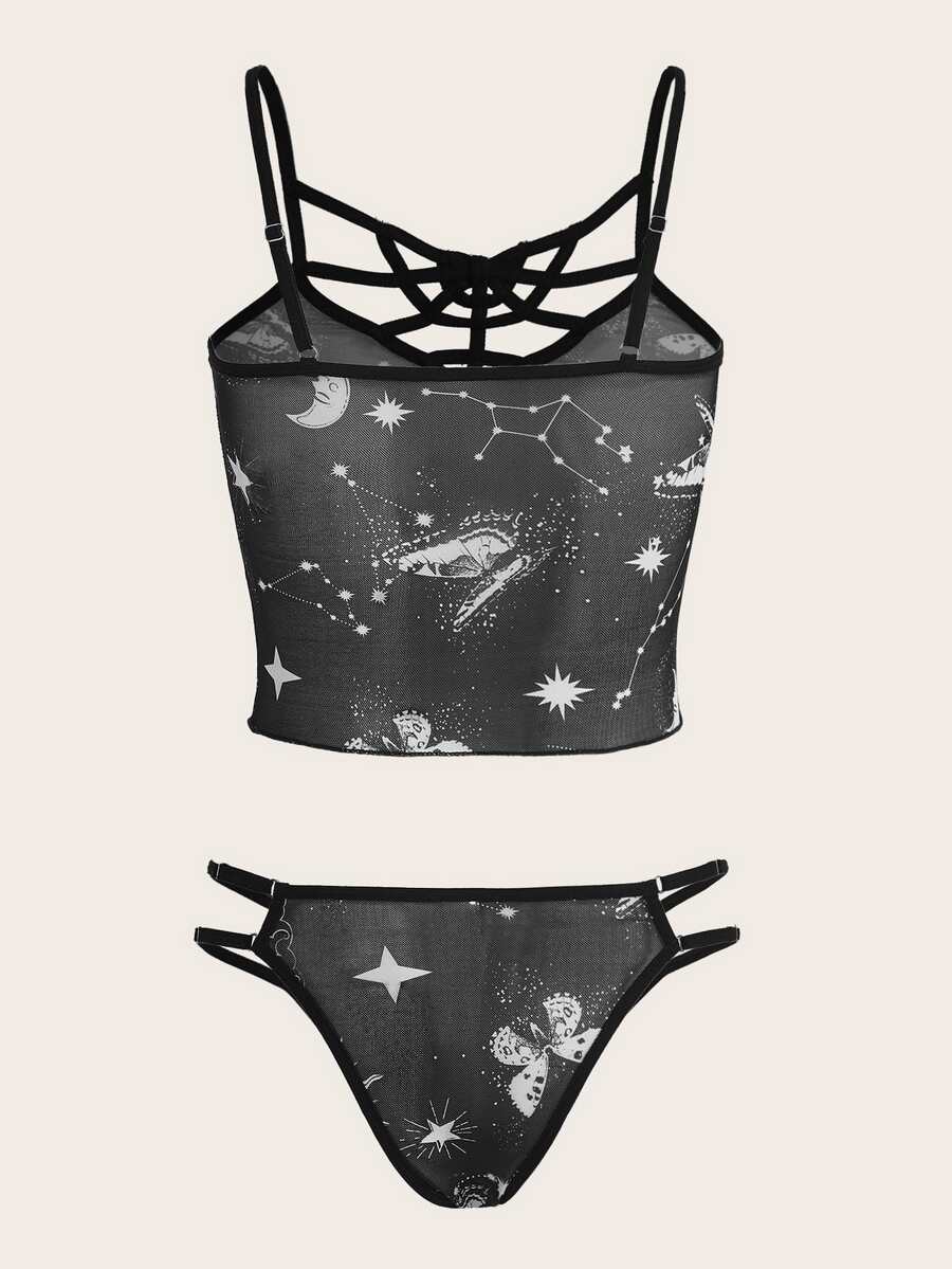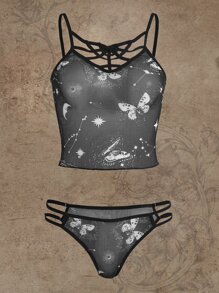 Set de lencería galaxia & con estampado de mariposa con abertura