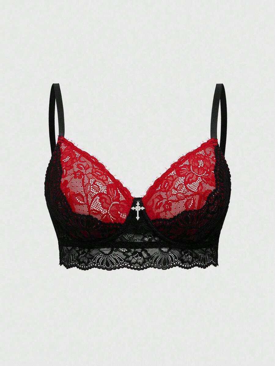 Goth Bralette con encaje en forma de cruz gótica y aros