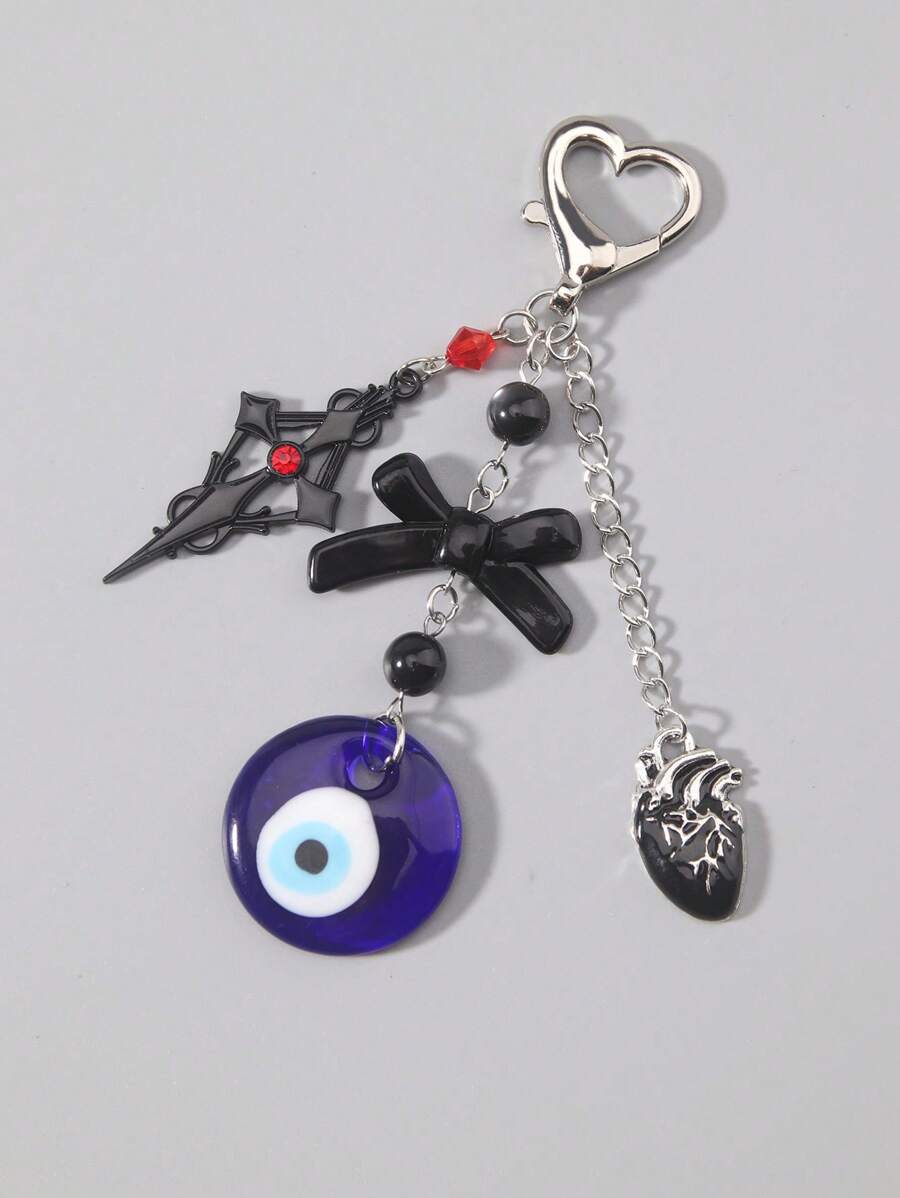 Goth Llavero con colgante de cruz gótica y cuentas negras, adecuado como decoración de funda de teléfono, colgante de bolso, regalo para hombres y mujeres
