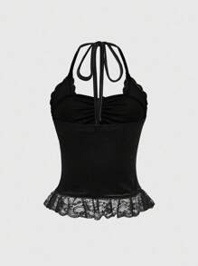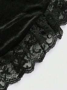 Goth Top ajustado de mujer de estilo gótico oscuro de terciopelo y encaje 2 en 1 con cuello halter, adecuado para Halloween