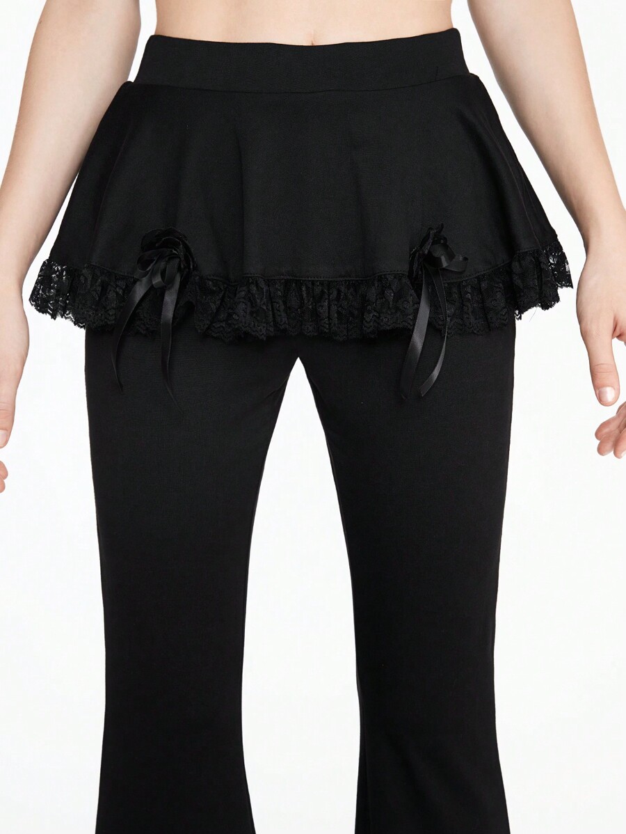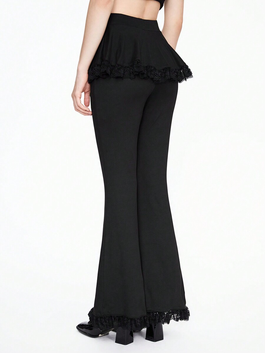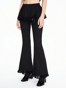 Goth Pantalones acampanados de Body ceñido con decoración de volantes florales estilo gótico romántico para mujeres