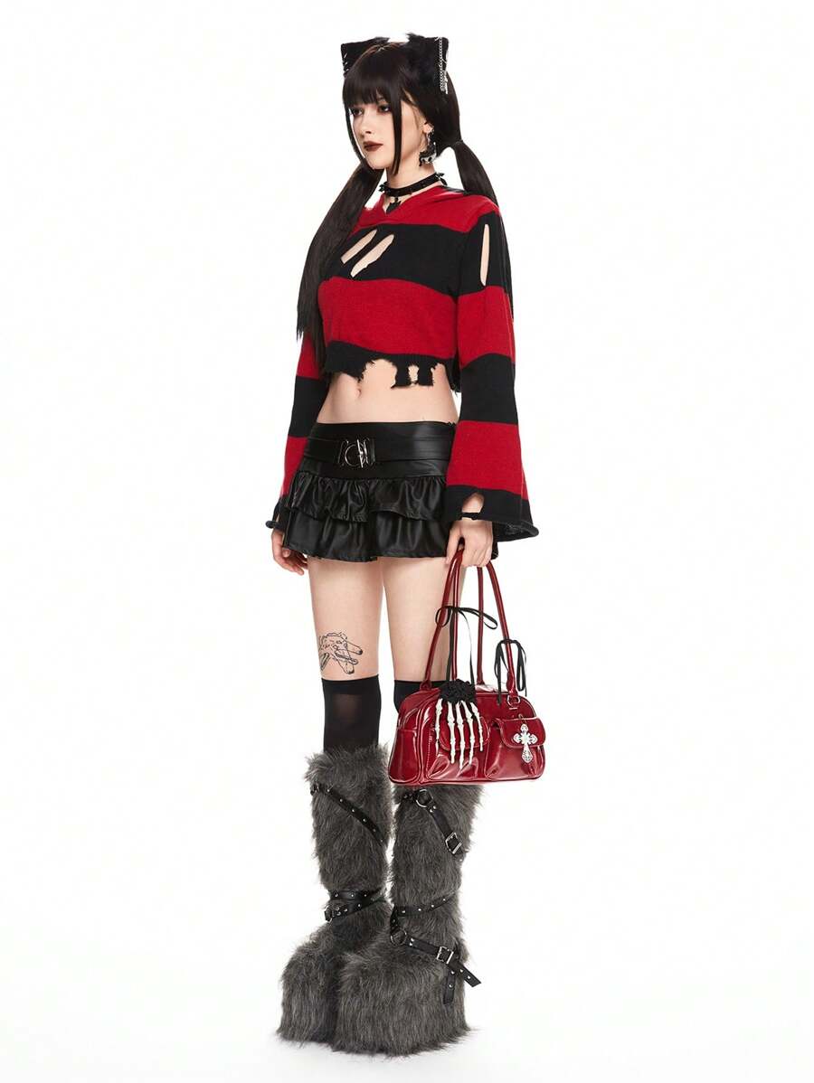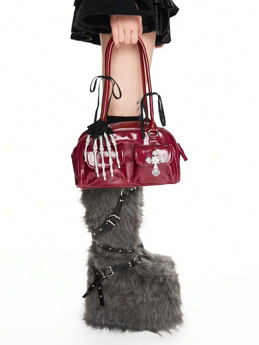Goth Bolso de hombro para mujeres con decoración de rosa gótica, calavera, hueso y cruz, en estilo retro punk