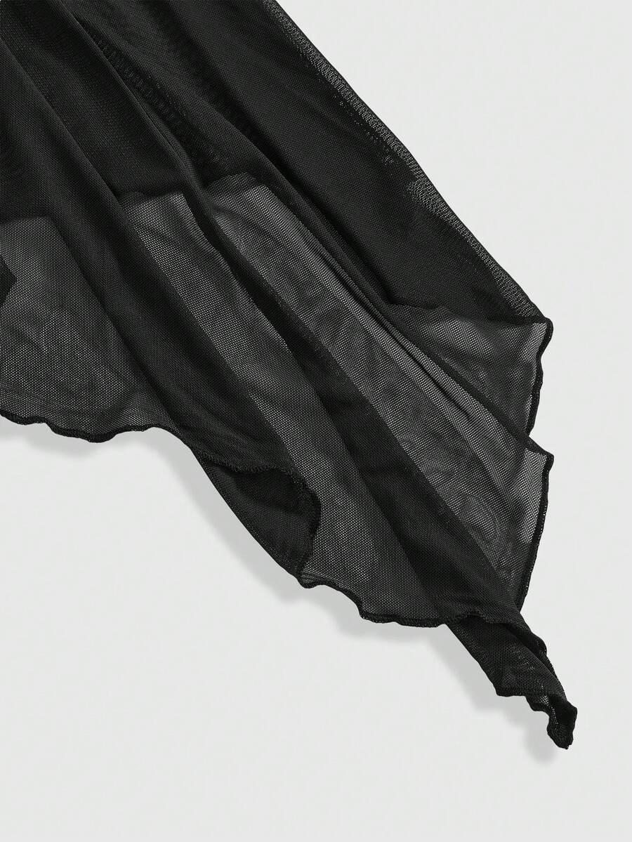 Goth Blusa corta con mangas abullonadas y transparentes con diseño de alas de murciélago en estilo gótico para mujer, ideal para verano, playa y vacaciones