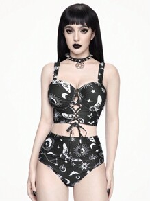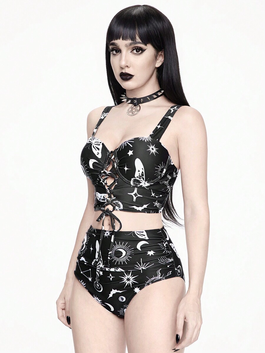 Goth Top de bikini de tirantes finos con estampado de mariposas y celeste, estilo gótico, para el verano