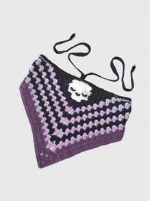Goth Diadema de punto con diseño de calavera y rayas de contraste en estilo gótico