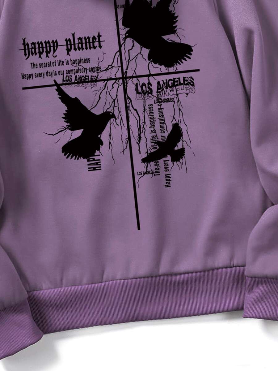 Goth Hombre Sudadera Térmica Con Mangas Raglán Con Bolsillo Canguro Con Estampado De Águila Y Eslogan