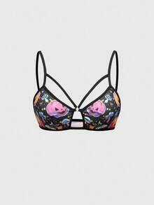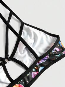 Goth Bralette con estampado de calabaza, seta y murciélago iridiscente gótico para Halloween