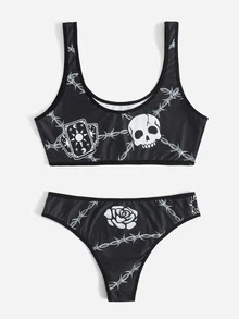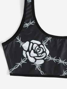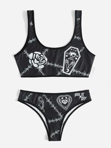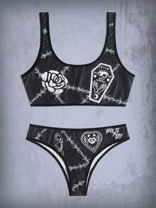Goth Set de lencería con letra con estampado floral