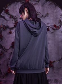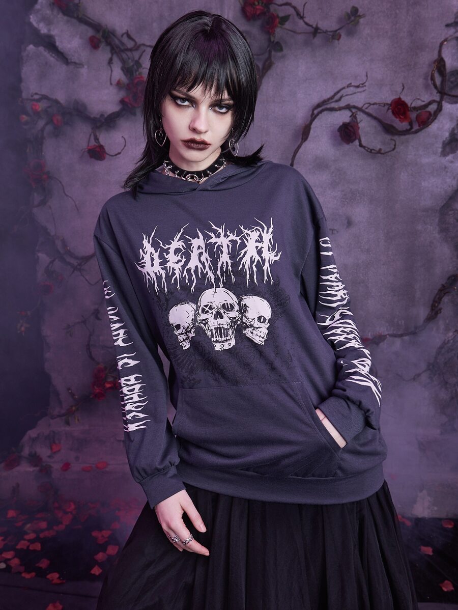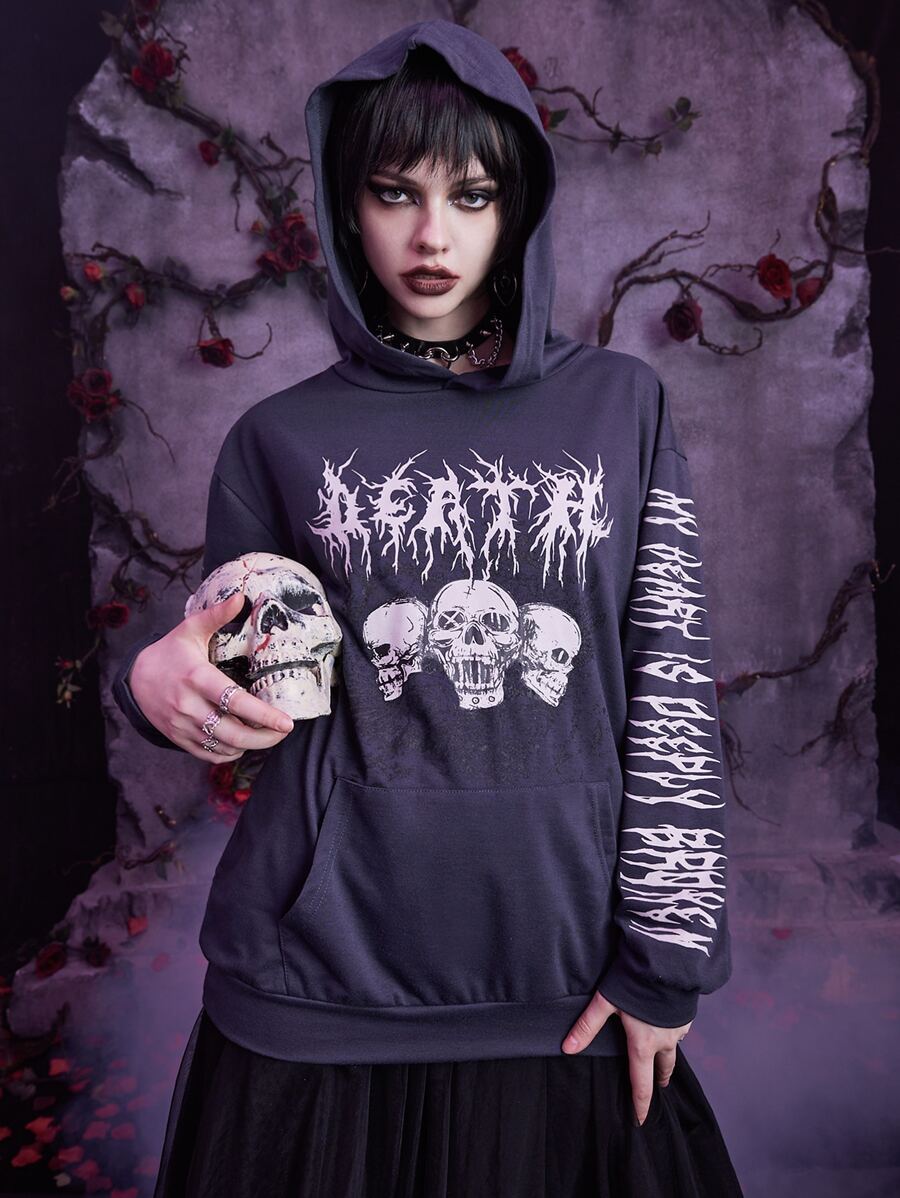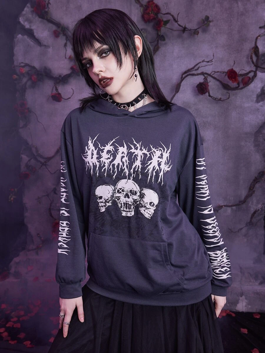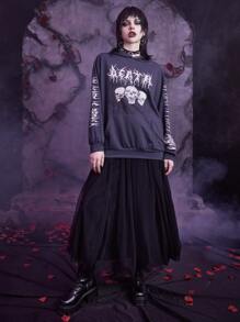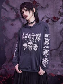 Goth Capucha con letra con estampado de cráneo con bolsillo de canguro