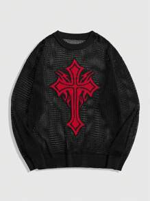 Goth Suéter ligero de punto, cuello redondo, manga corta, suelto, hueco, Top, blanco vintage, camiseta interior, sexy, playa, nuevo verano, ropa deportiva casual