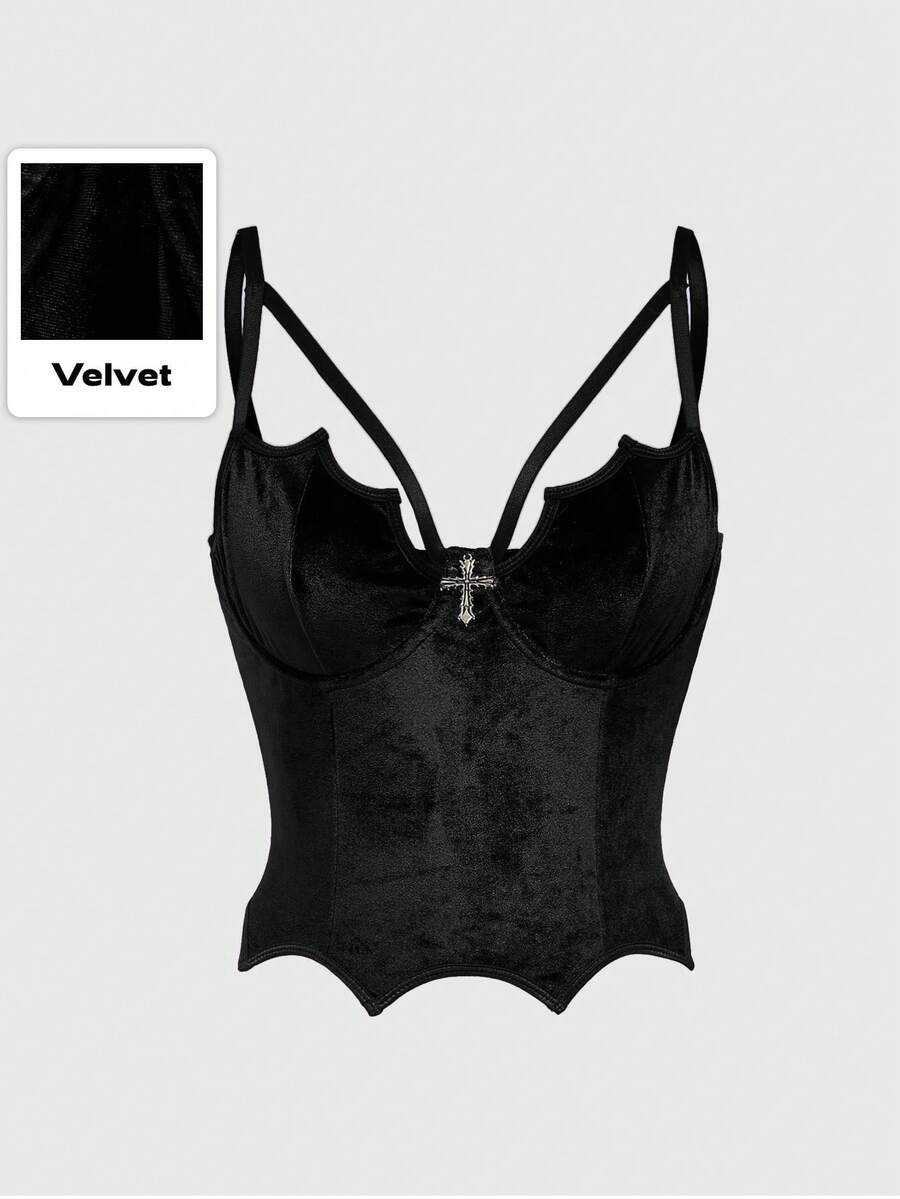Goth Top de terciopelo asimétrico cruzado con bajo asimétrico y ajuste sexy premium para mujeres