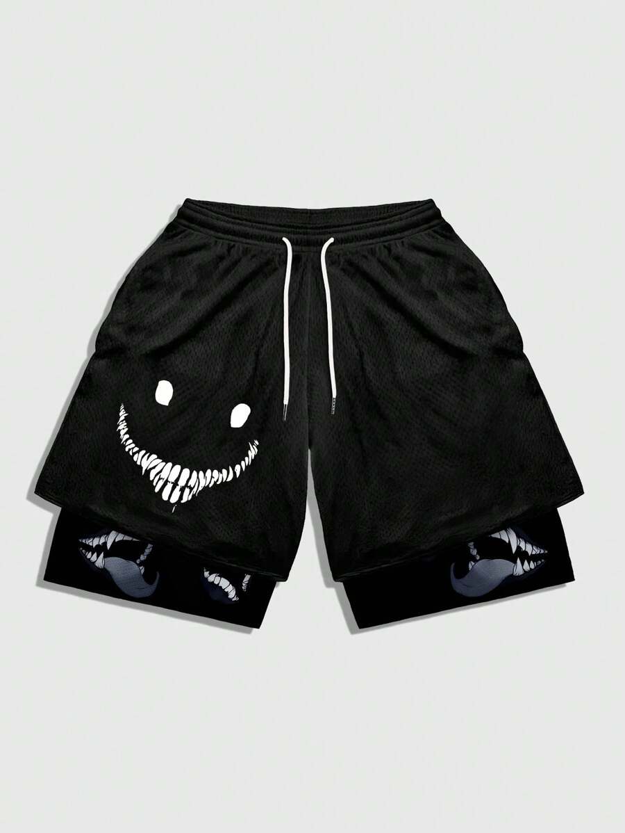 Goth Pantalones cortos de baloncesto con cintura de cordón y malla para hombres con gráfico de figura, para la escuela