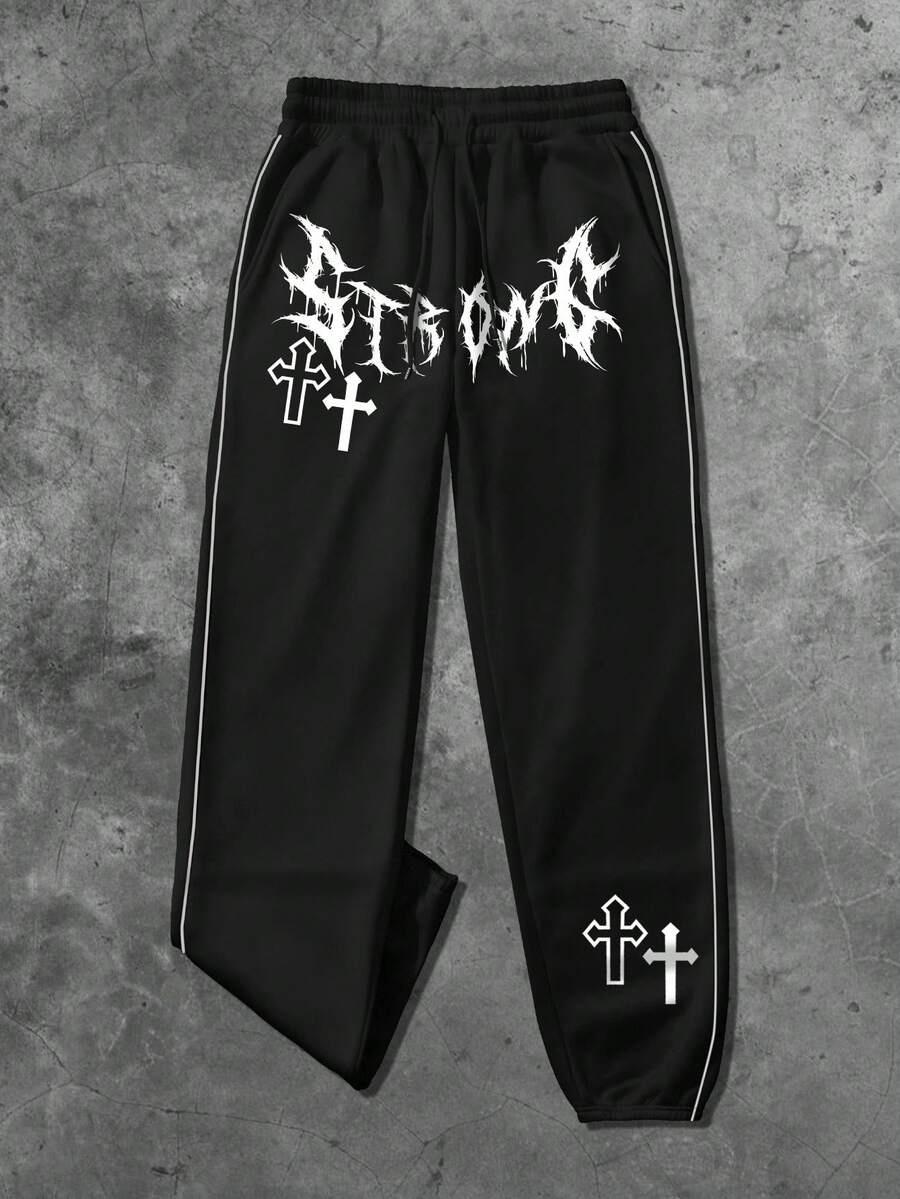 Goth Pantalones de chándal casuales para hombres con estampado de cruz negra, cintura con cordón y bolsillos