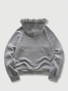 Goth Sudadera con capucha con cremallera, estampado de cruz, casual y cálida, con cuello de piel, para otoño/invierno