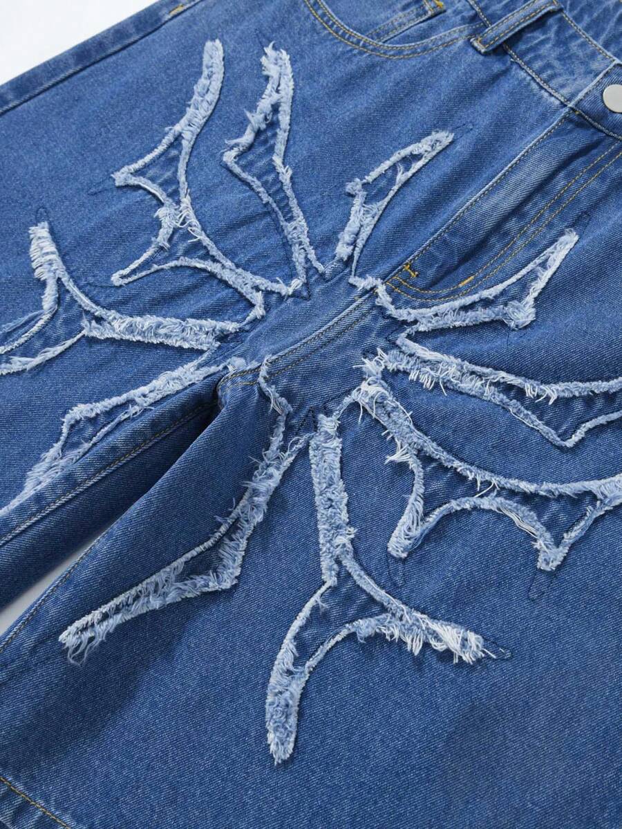 Goth Pantalones cortos vaqueros casuales para hombre con parche de araña lavado, Halloween