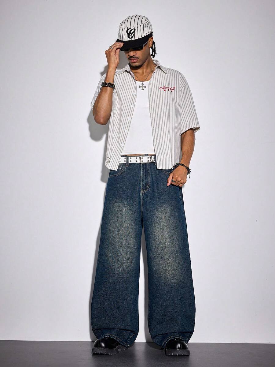 Goth Jeans casuales anchos y sueltos con bolsillo bordado con cruz para hombres