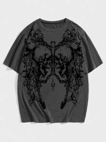 Goth Camiseta de cuello redondo con estampado floral para hombre, estilo escolar, años 2000