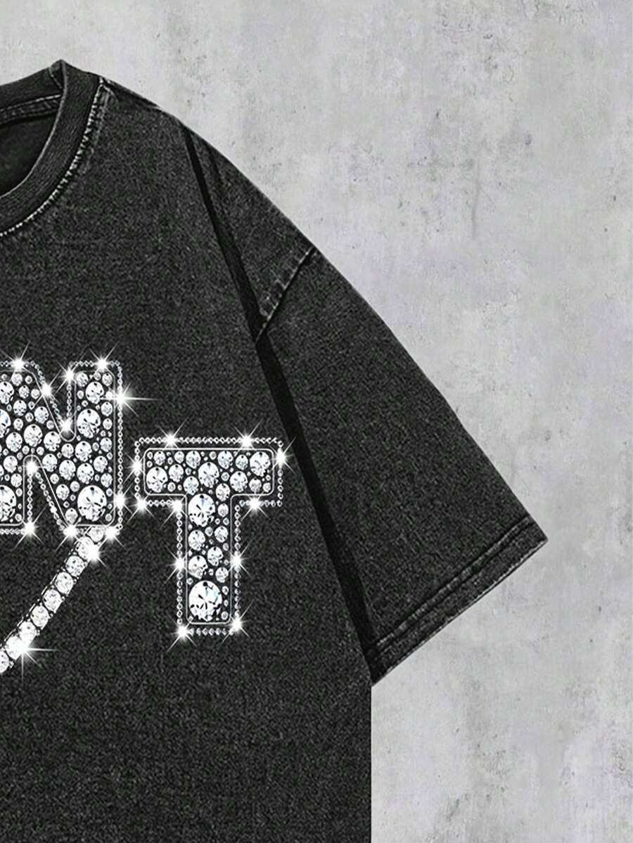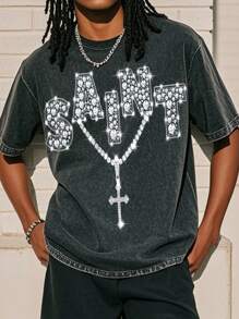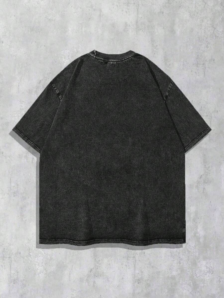 Grunge Punk Camiseta de verano casual gótica para hombres con estampado de letras y lavado ácido