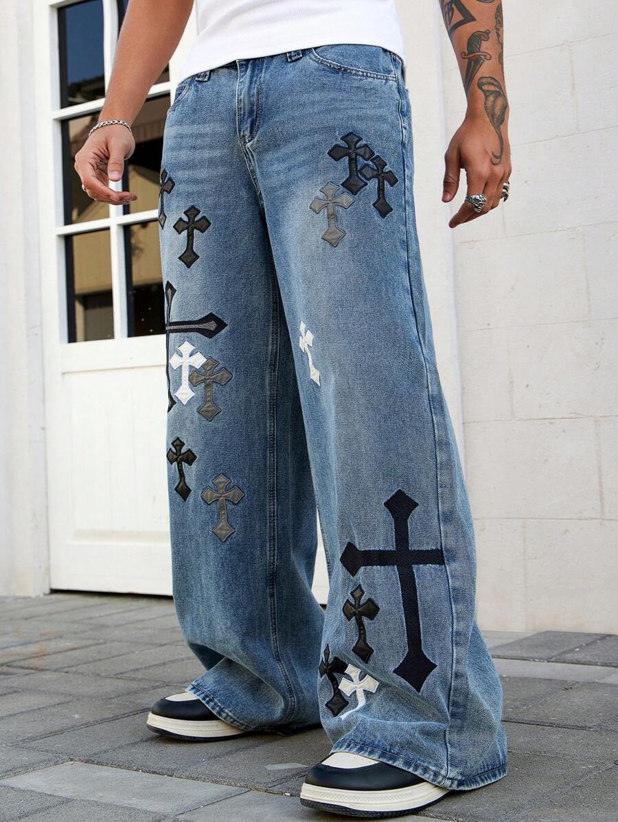 Street Life Jeans de estilo gótico con cruz simple, adecuados para el verano y Halloween