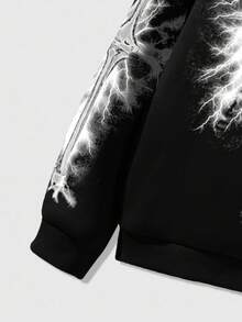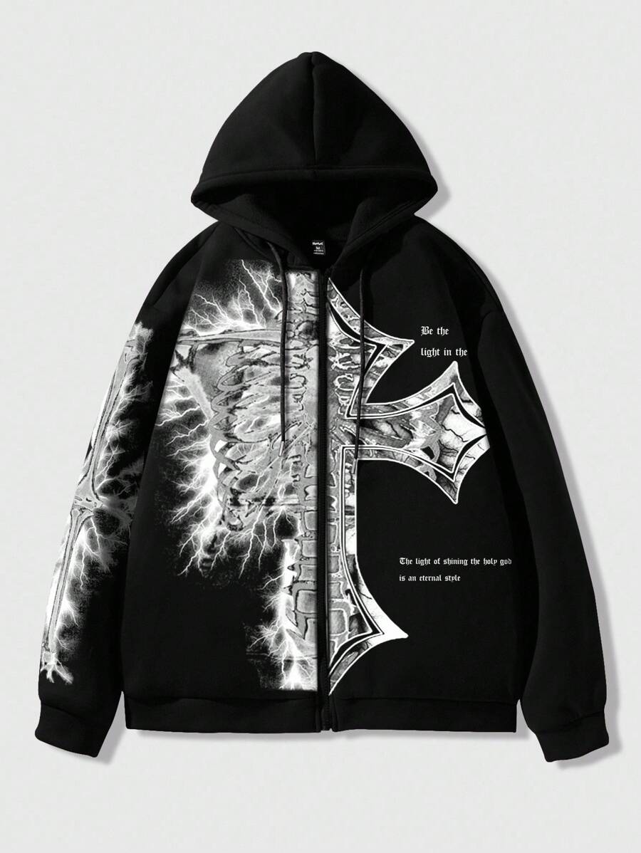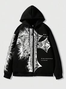 Goth Sudadera con capucha para hombres con estampado de lema y cierre delantero con cremallera, escuela