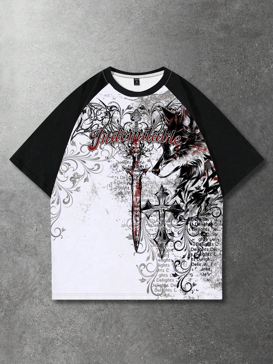 Goth Camiseta casual de manga corta con cuello redondo, estampado de letras y cruz, para hombre