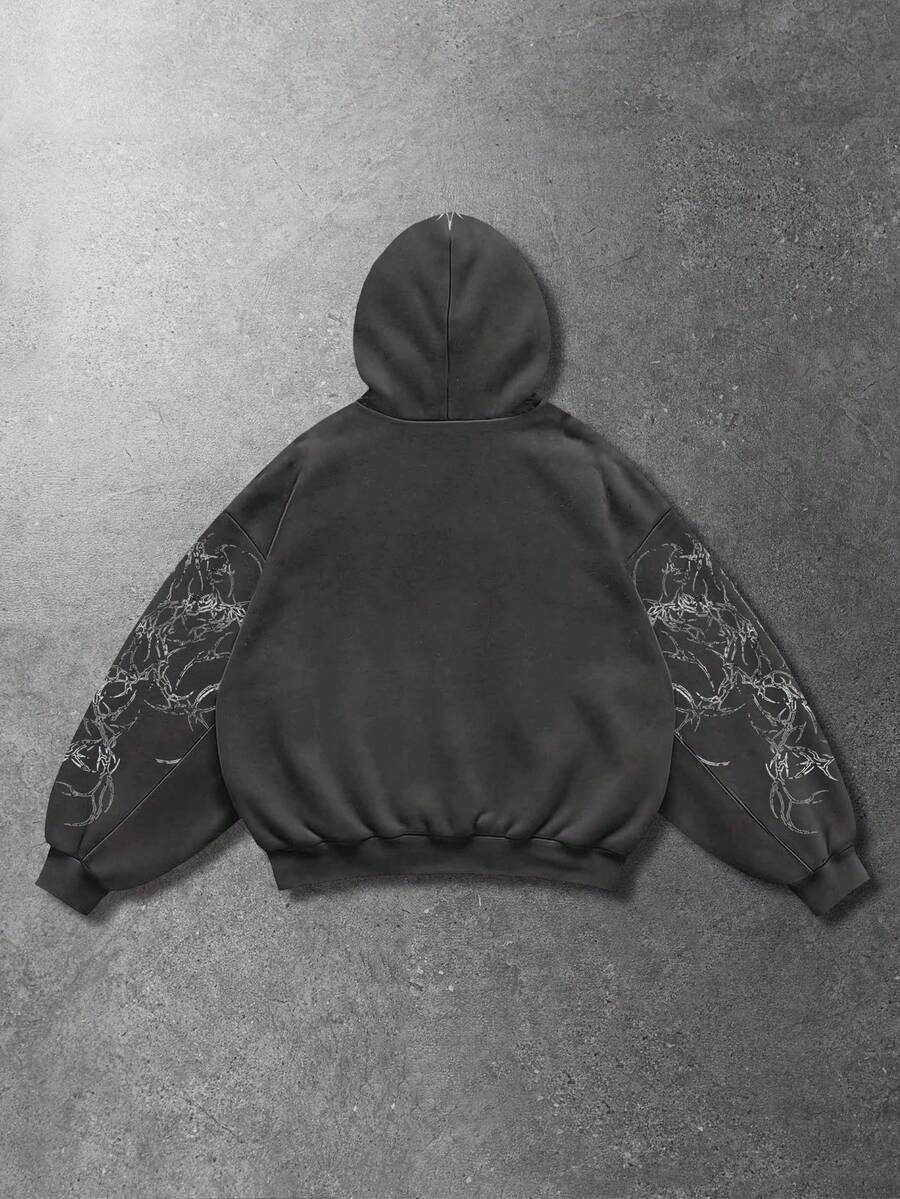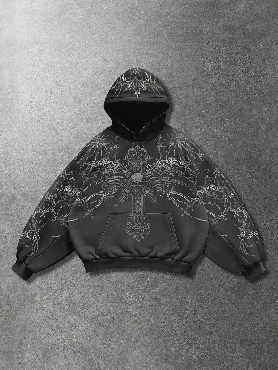 Goth Sudadera con capucha casual y holgada con bolsillos, estampada para hombre