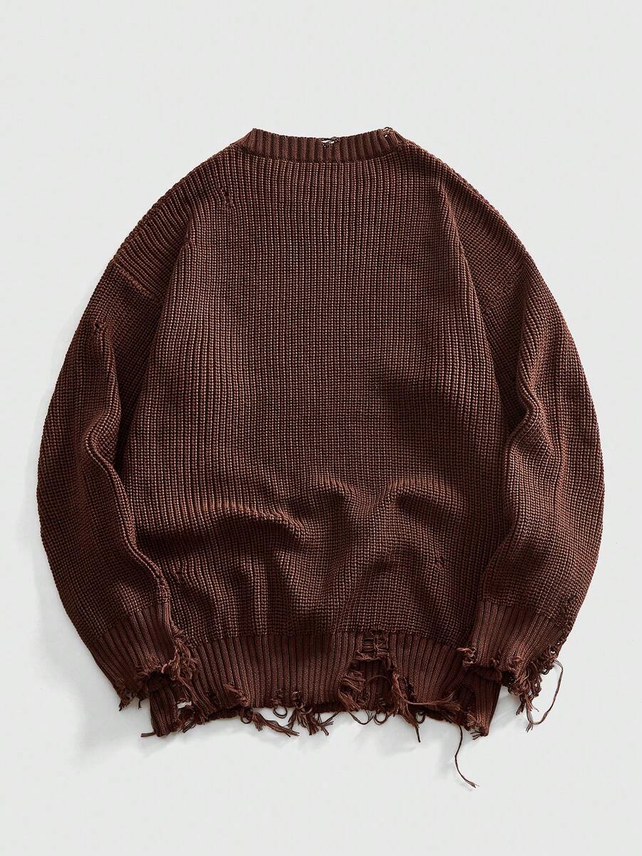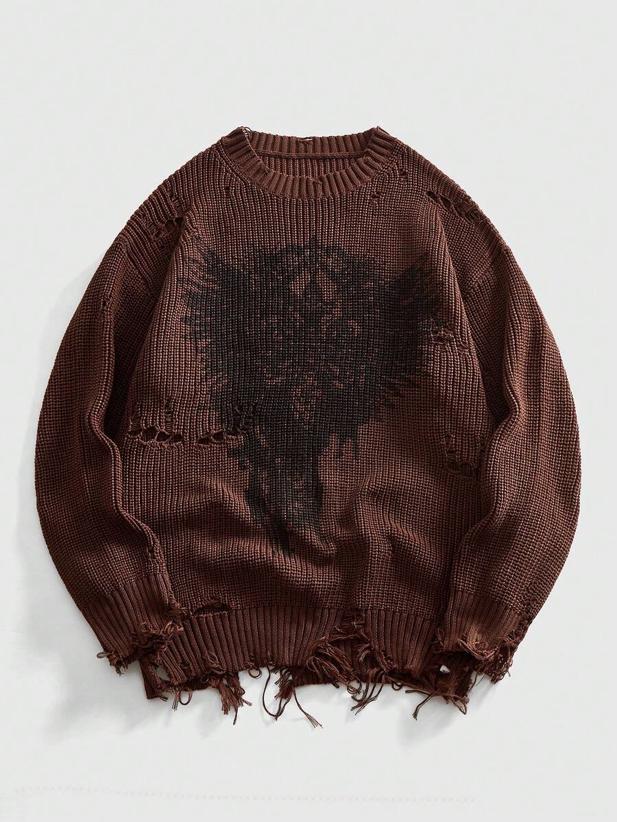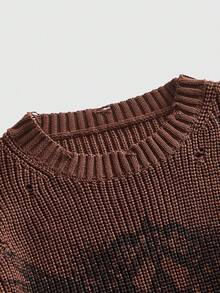 Goth Suéter de punto con estampado apocalíptico desgastado para hombre