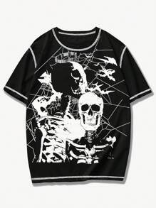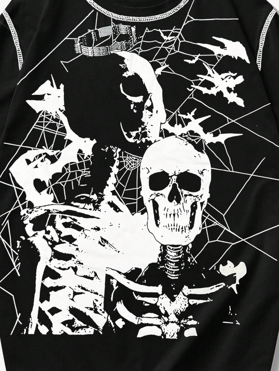 Goth Camiseta Para Hombre Con Estampado De Cráneo Y Costuras Expuestas