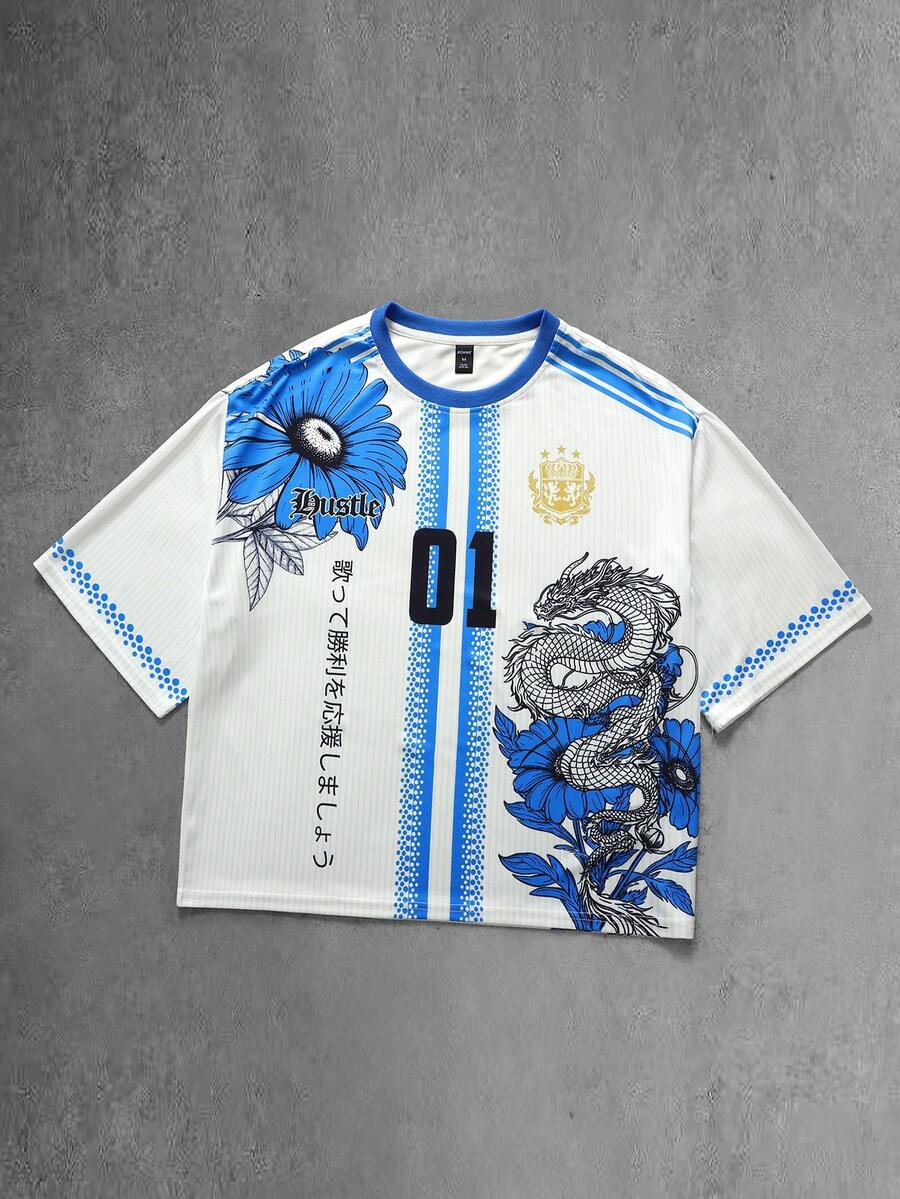 Goth Camiseta suelta de malla con estampado de girasol para hombre