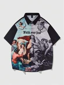 Street Life Camisa casual de manga corta y de un solo abotonado con diseño de Nuestra Señora de la Cruz para hombres