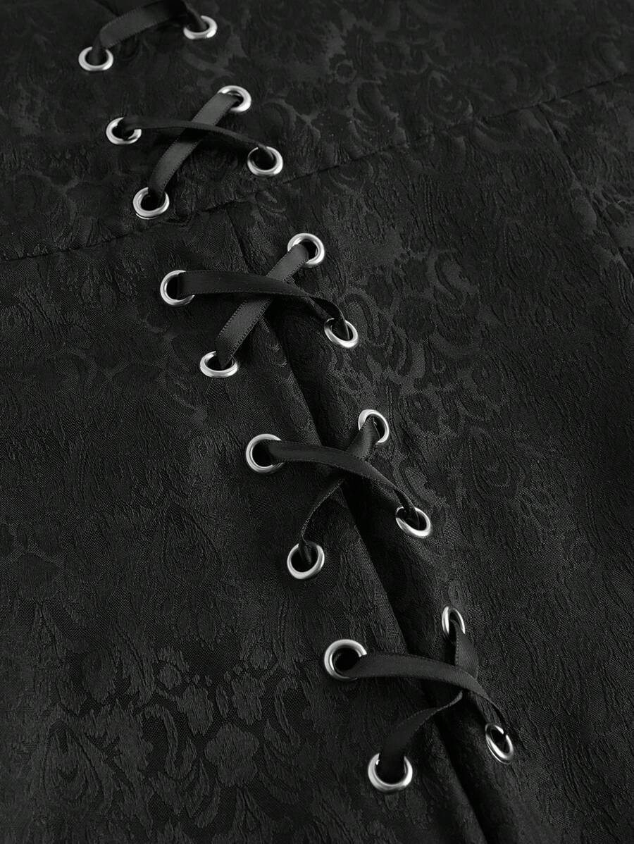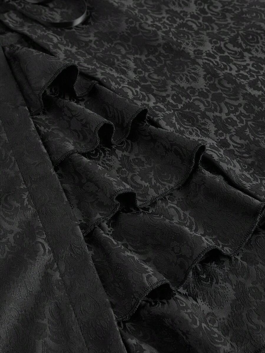 Goth Falda con abertura lateral para mujer, con diseño de flores y motivos de enredaderas en estilo vintage palaciego y decoración de moño multicapa