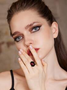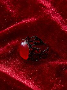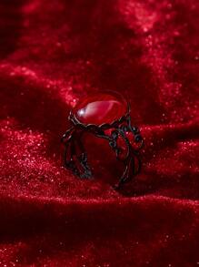 Goth Anillo abierto oval con diseño de gema