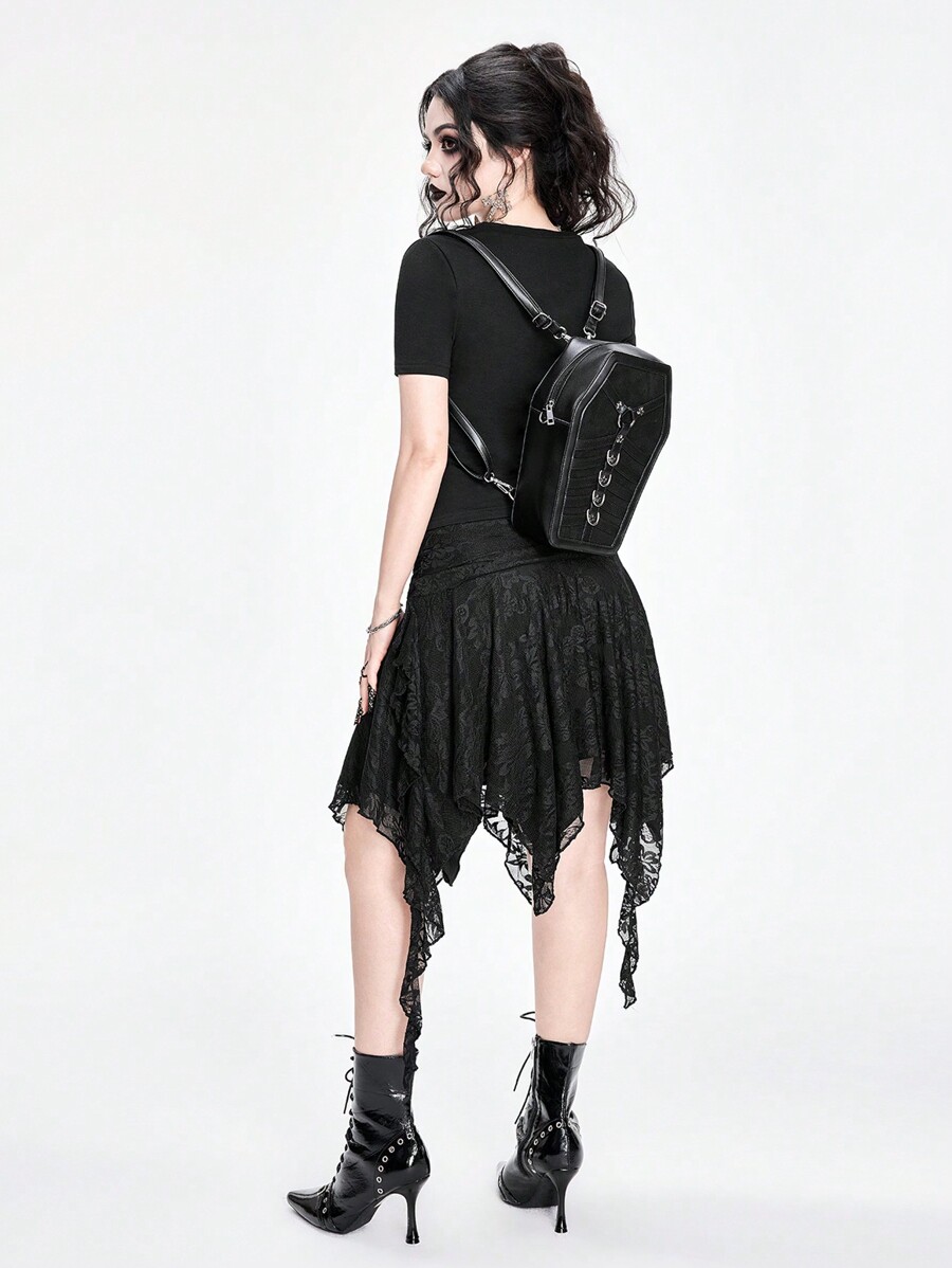 Goth Mochila de ataúd de pana de patchwork, escolar