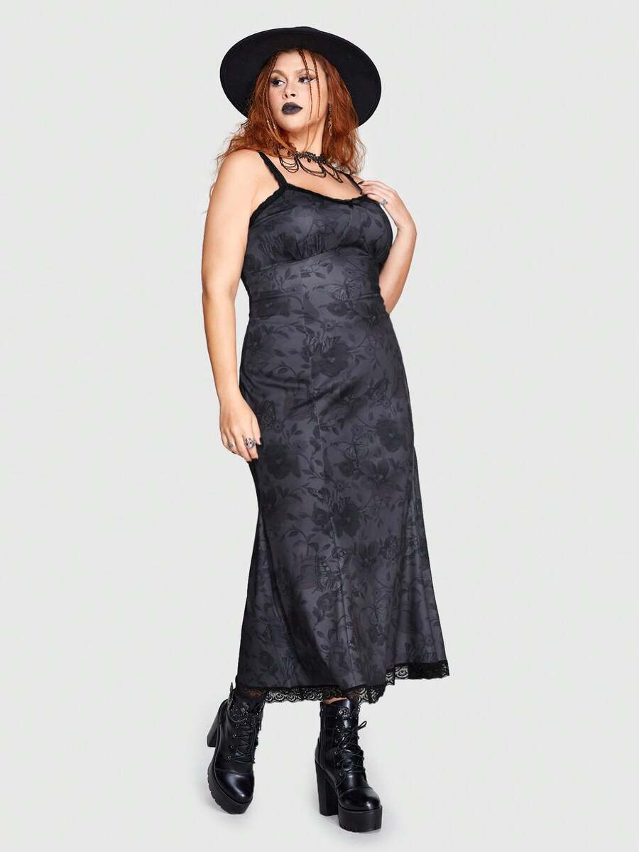 Goth Talla grande Vestido de tirantes con estampado floral con encaje en contraste