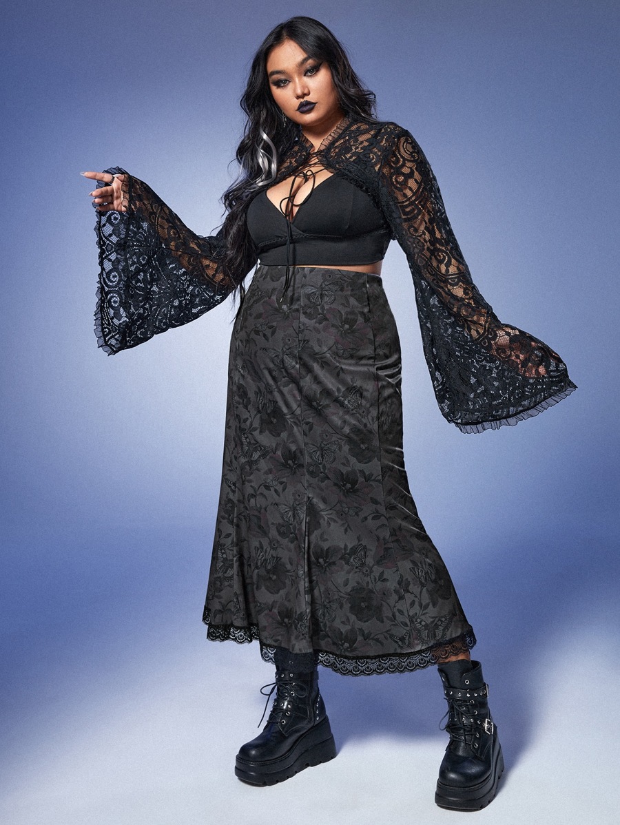 Goth Falda bajo de sirena con estampado floral ribete con encaje