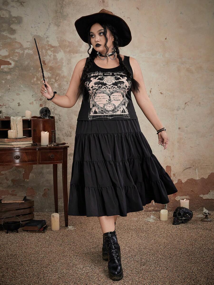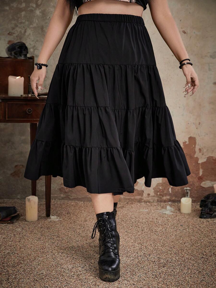 Goth Talla grande Falda bajo con fruncido