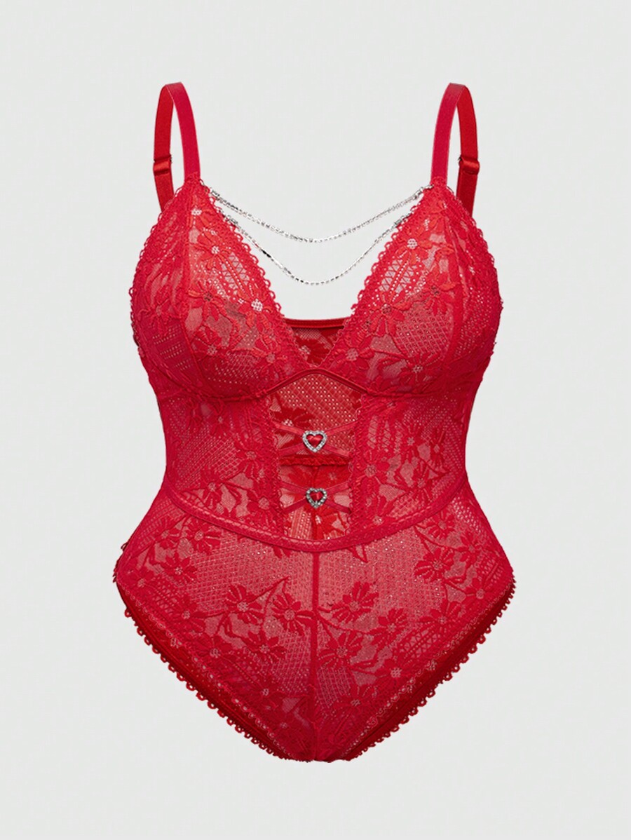 Goth Bodys sexy sin cables con cadena metálica gótica y encaje romántico para tallas grandes