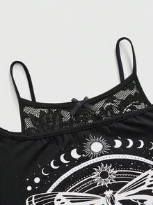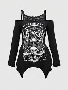 Goth Blusas de talla grande para mujer con estampado de sol, luna, estrellas y mariposas, en estilo gótico. Camiseta de manga larga para mujer en otoño.