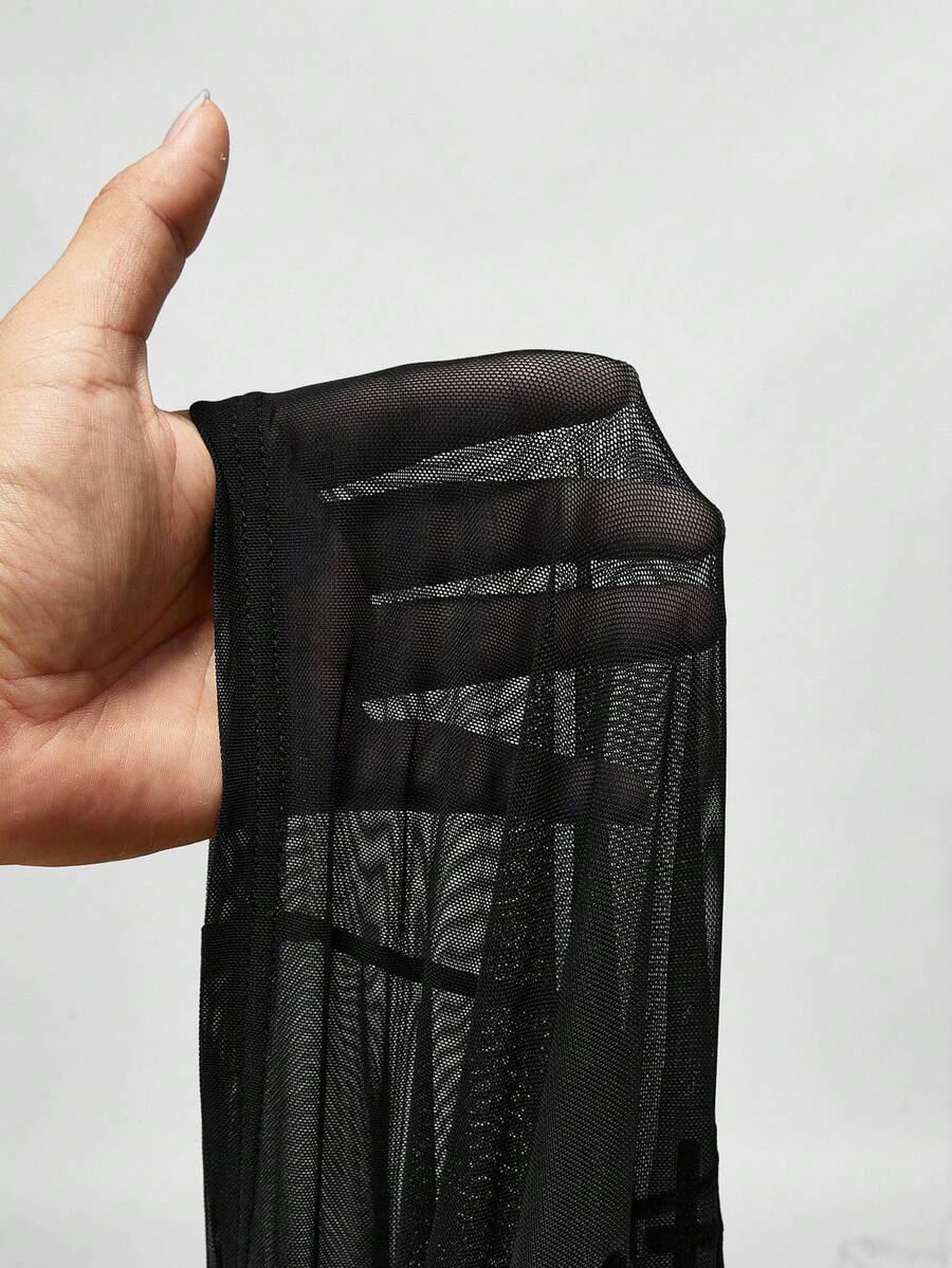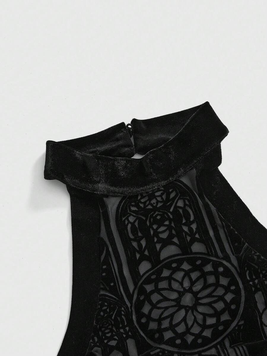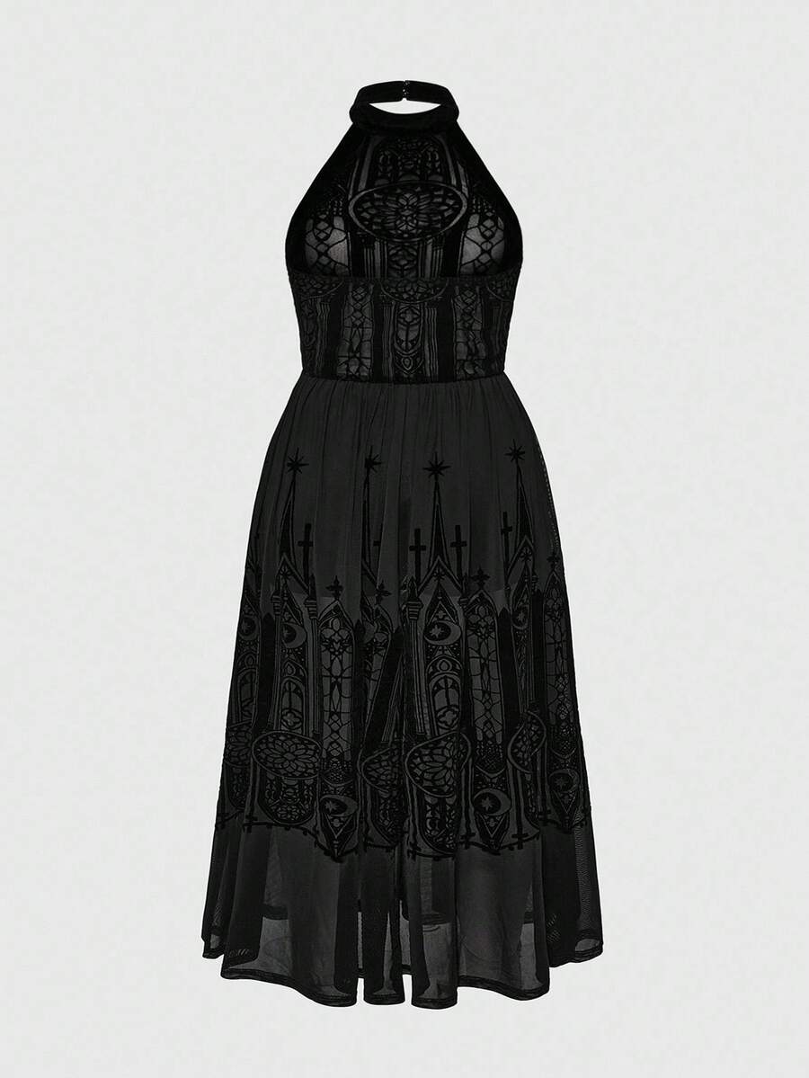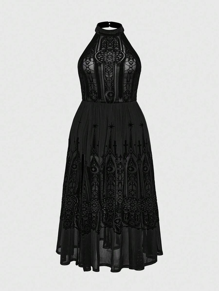 Goth Vestido sexy con abertura alta, estampado de palacio vintage y efecto flockado para tallas grandes