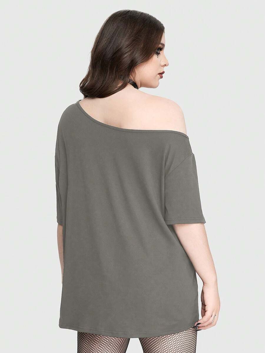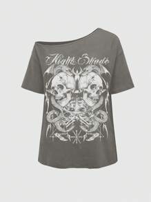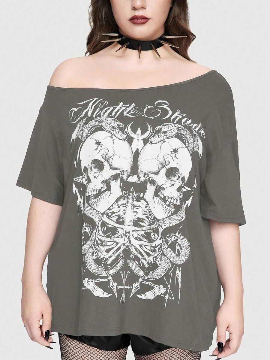 Goth Camiseta holgada de cuello caído con estampado de calavera de patrón de piel de serpiente para mujeres de talla grande