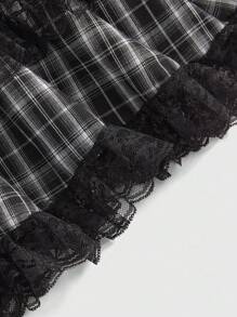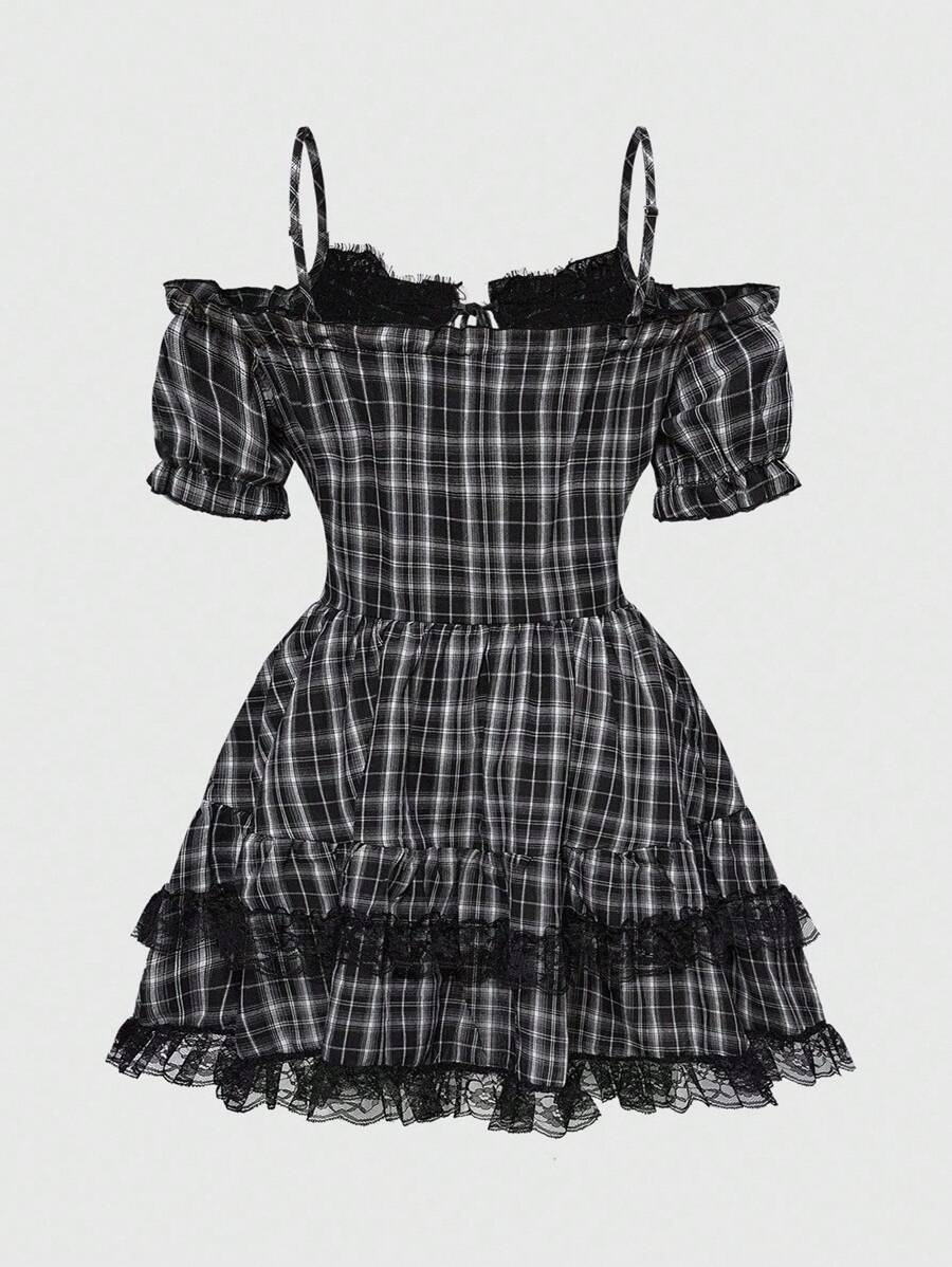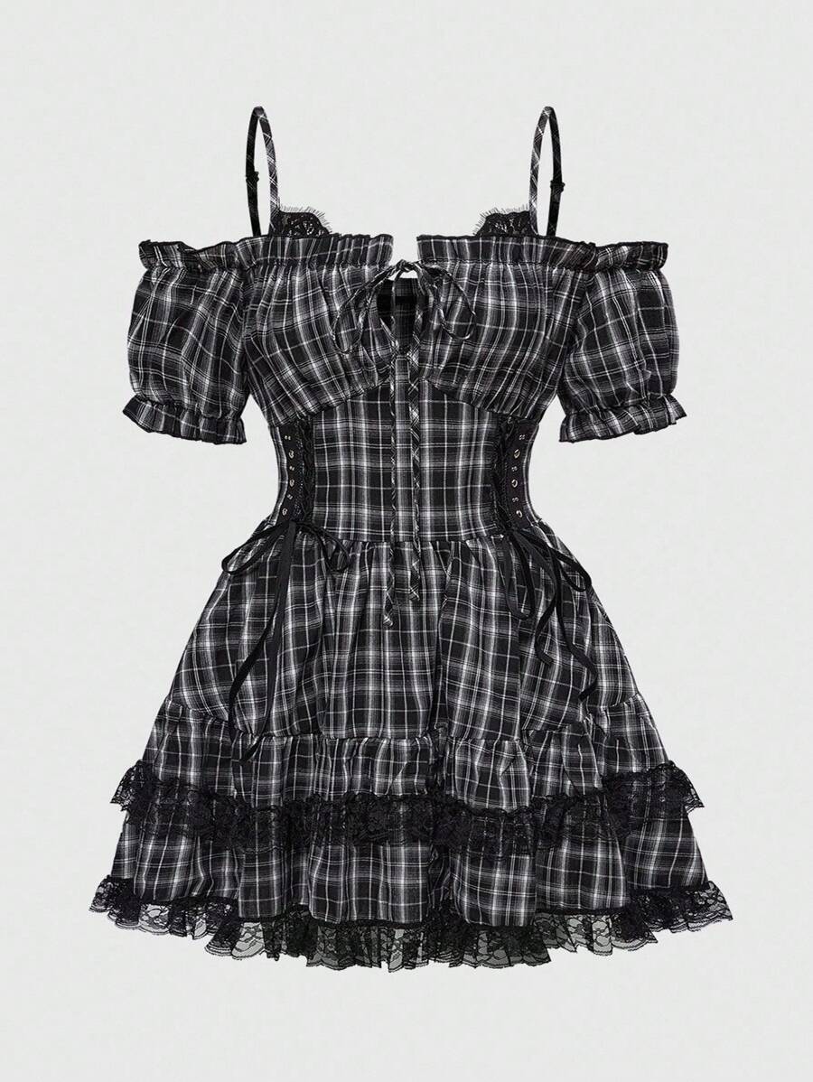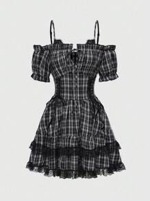 Goth Vestido corto de verano casual para mujer de talla grande con hombros descubiertos y estampado a cuadros