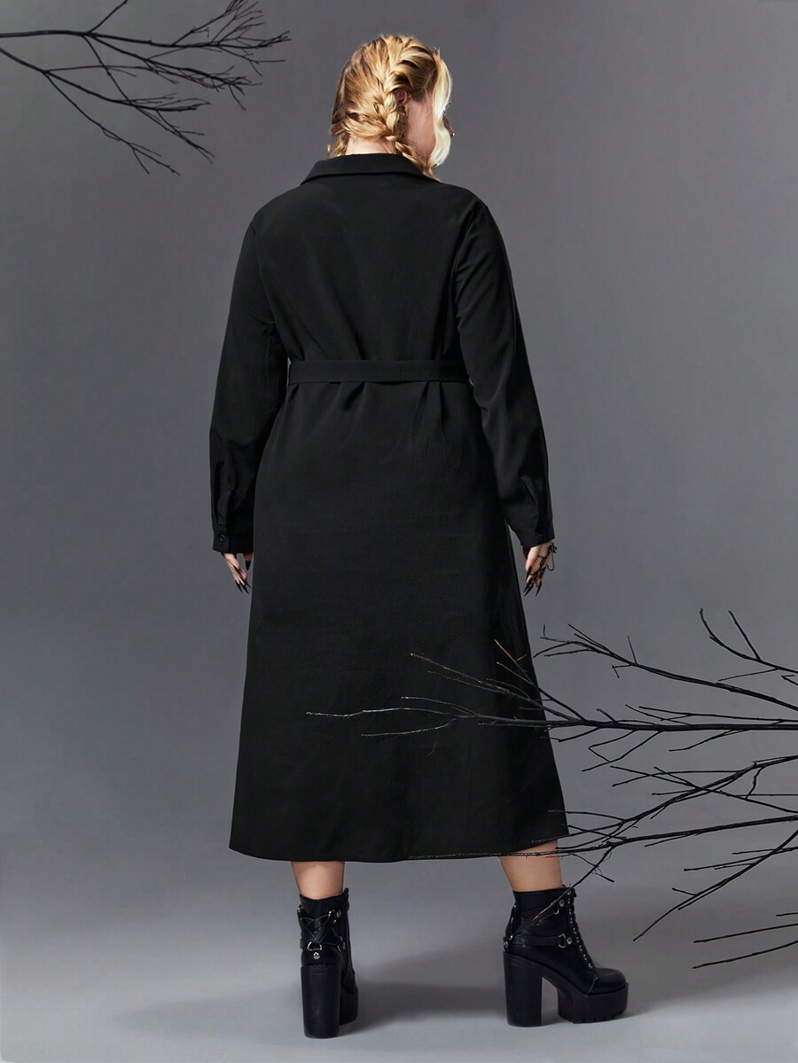 Goth Vestido Camisa Con Cinturón Bordado De Serpiente Para Tallas Grandes