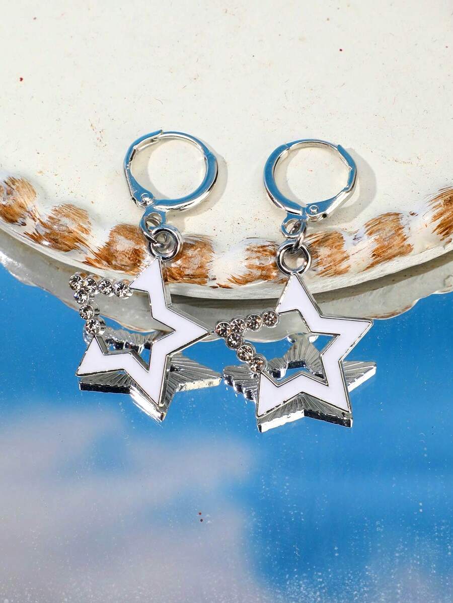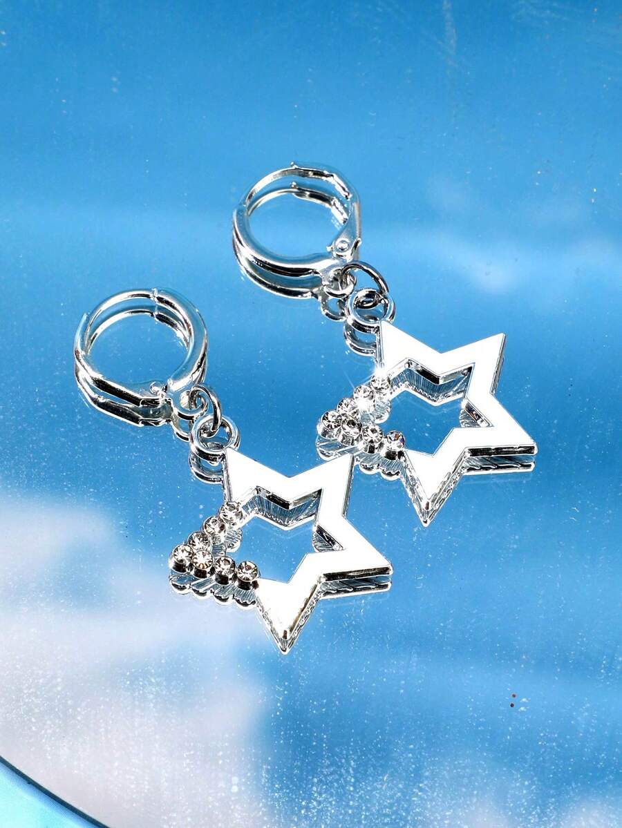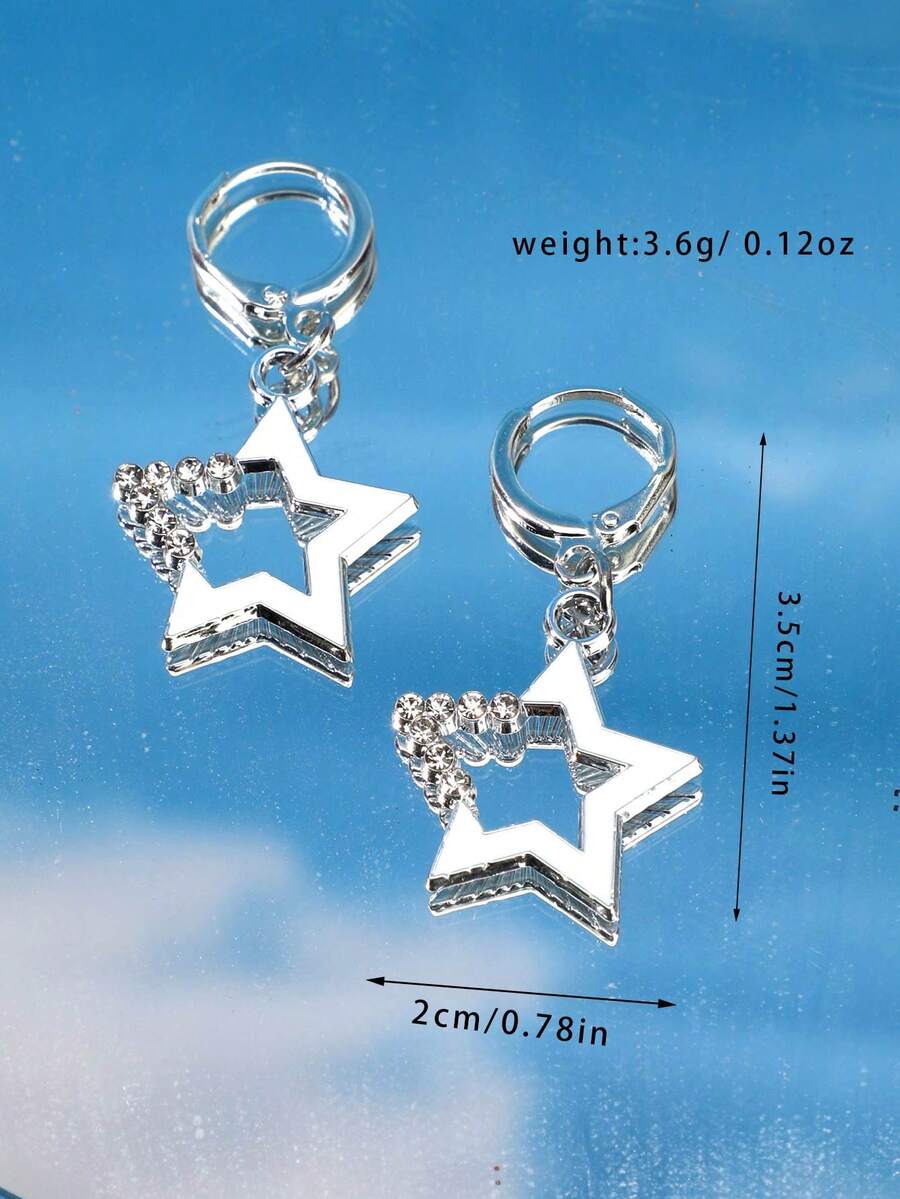 Goth Pendientes Largos De Estilo Punk Rock De Forma De Estrella Con Incrustaciones De Diamantes De Imitación, Unisex