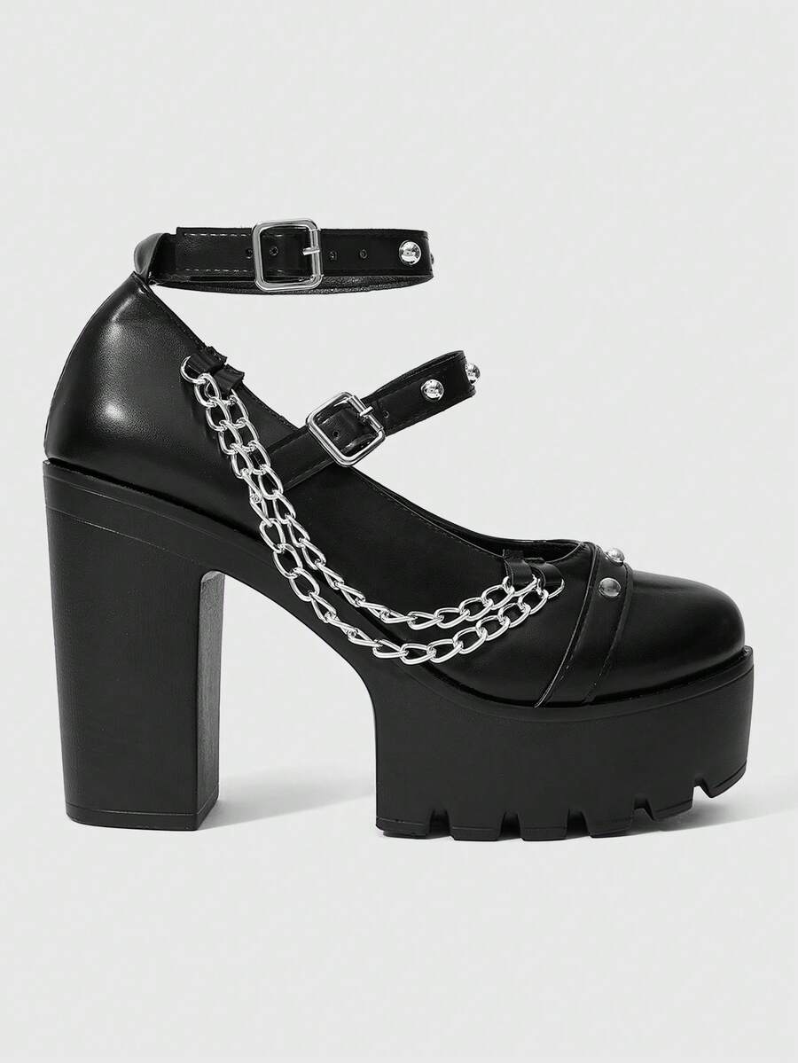 Goth Zapatos de tacón alto de estilo Mary Jane de cuero morado, bombas de estilo Lolita con punta cerrada y correa con lazo
