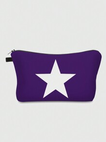 Goth Bolsa de maquillaje portátil de gran capacidad con estampado de estrellas moradas