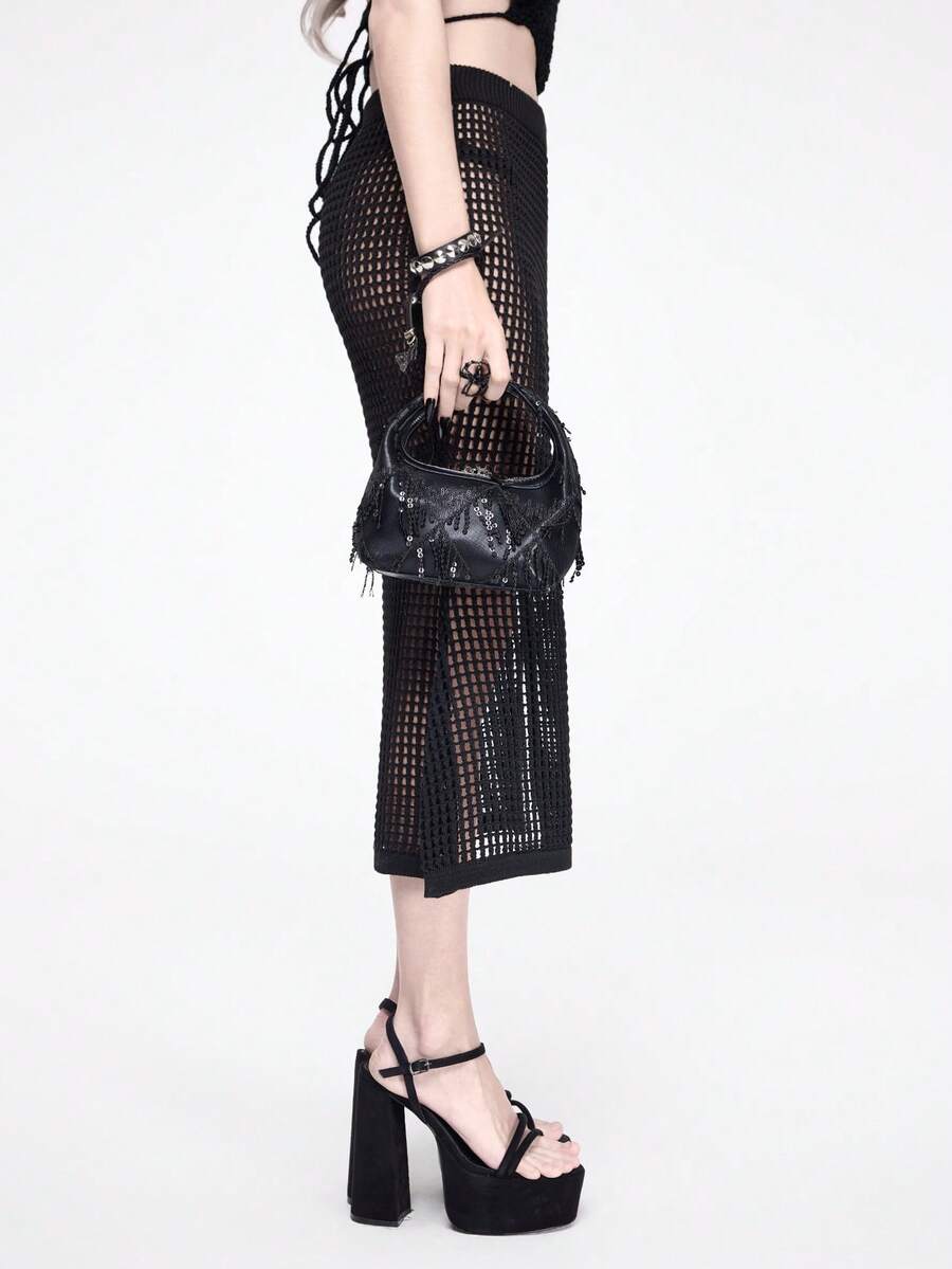 Goth Bolso de mano de mujer con decoración de flecos con lentejuelas