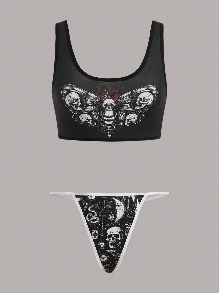 Goth Set de lencería de cráneo & con estampado de mariposa