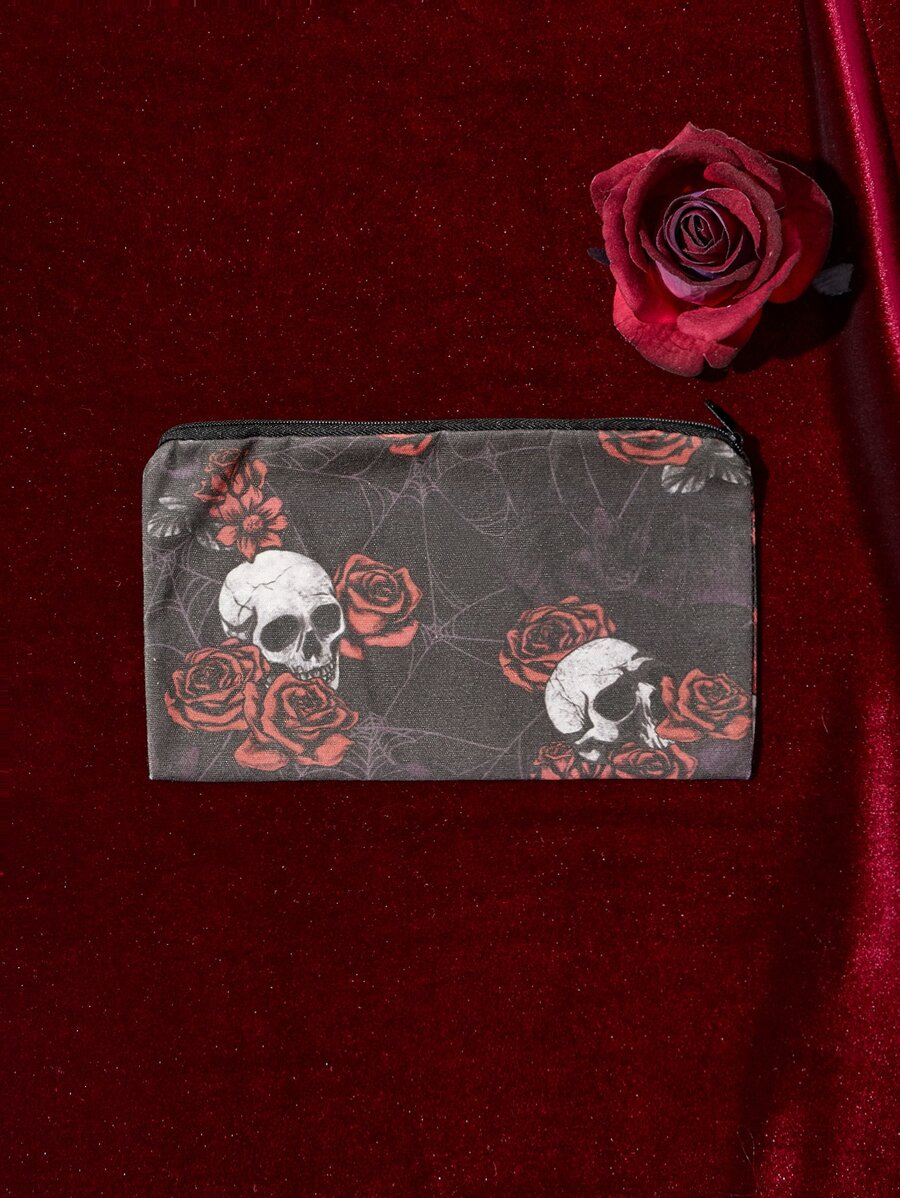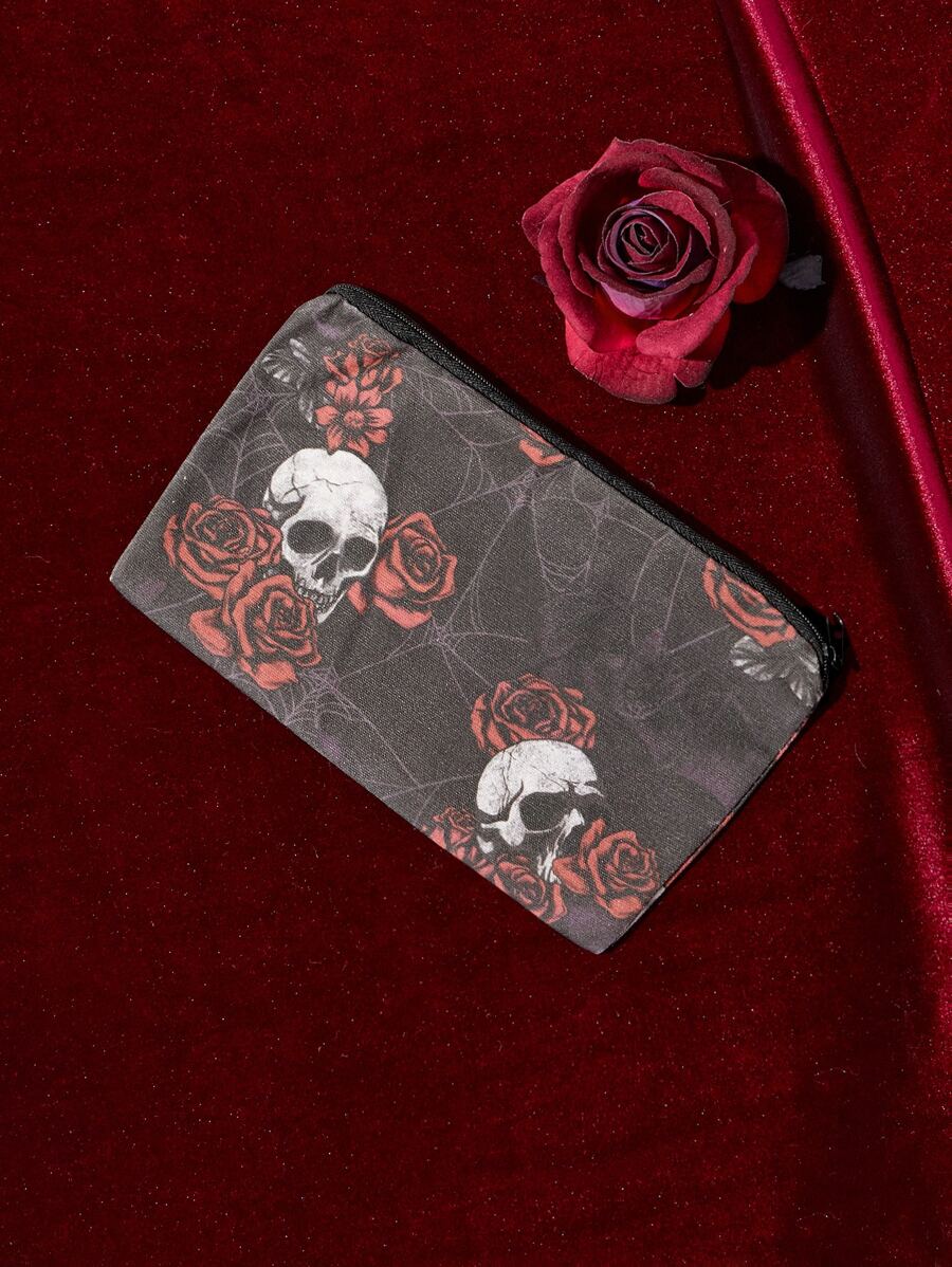 Goth Bolsa cuadrada con estampado de cráneo & de rosa