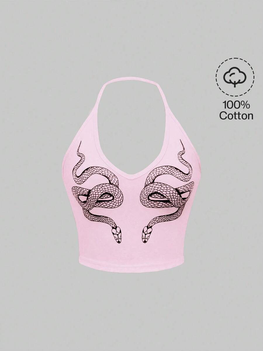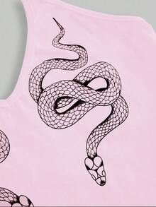 Goth Camiseta de tirantes finos y ajustada con estampado de serpiente para mujeres
