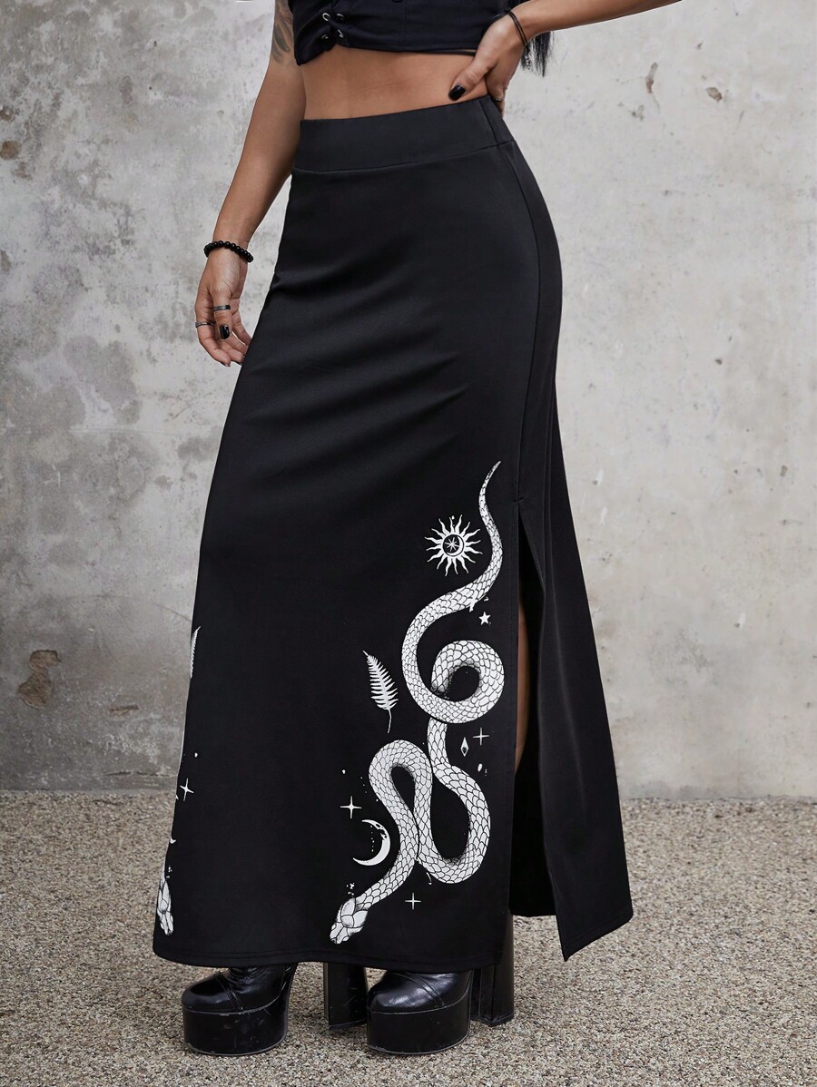 Goth Falda de estampado de serpiente con abertura en el muslo